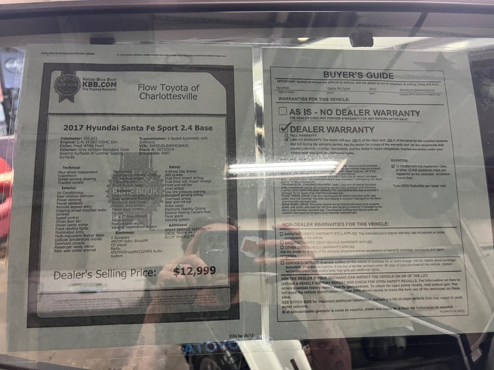 FLOW CERTIFIED! 12 MONTHS/12000 MILE WARRANTY 3 day money back guarantee and a free maintenance package on this 2017 HYUNDAI SANTA FE SPORT