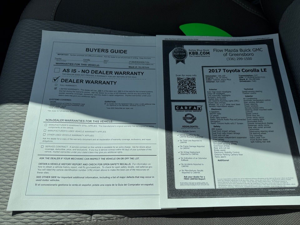 FLOW CERTIFIED! 12 MONTHS/12000 MILE WARRANTY plus 3 day money back guarantee https://www.flowauto.com/Home/FlowCertified and a FLOW 2YR/24 000 FREE Maintenance Package on this 2017 Toyota Corolla Galactic Aqua Mica LE! **