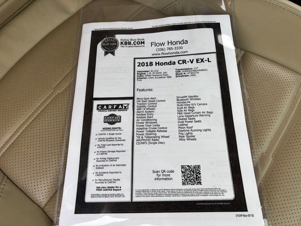Why Buy From Flow: - Low no haggle prices made it Fun Easy and Transparent. - Quality Reconditioning Process made any used car nearly new reconditioning report and carFax report posted online for your review. - Warranty on every vehicle we sell. - 2 year maintenance (includes oil change and tire rotation) at no charge to you on Flow Certified vehicles - 3 day money back guarantee. - Great selection with our large network we will bring you any car that you like at no additional charge. We look forward to serving you at Flow Honda of Winston Salem. Exit 192 off I-40 in Winston Salem. Any questions about this vehicle please call 336-785-3380. Thank you.