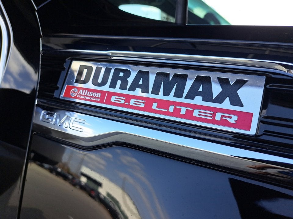 Beneath the muscular exterior lies the impressive Duramax 6.6L V8 Turbodiesel engine, delivering an exceptional 445 horsepower and an astounding 910 lb-ft of torque. Paired with a 10-speed automatic transmission, this powertrain ensures effortless towing and hauling, whether you're tackling tough job sites or embarking on your next adventure.