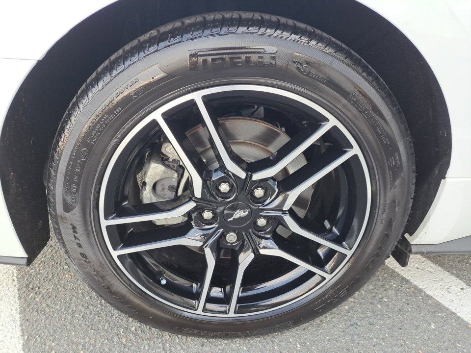 Complementing the Mustang's impressive performance is its sleek and athletic exterior. The striking white paint and bold design elements, including the integrated turn signals and spoiler, create a commanding presence on the road. The 18-inch machined-face aluminum wheels further accentuate the Mustang's sporty and sophisticated aesthetic.
