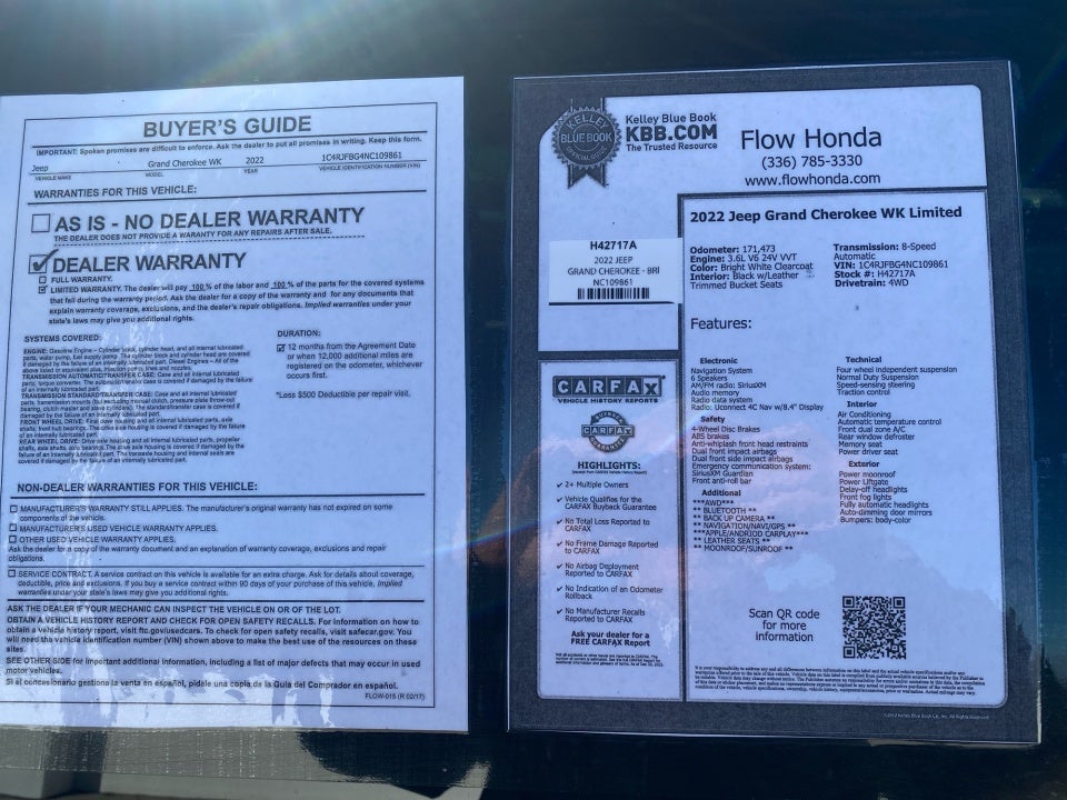 FLOW CERTIFIED! 12 MONTHS/12000 MILE WARRANTY and a free maintenance package on this 2022 Jeep Grand Cherokee WK Bright White Clearcoat Limited! **