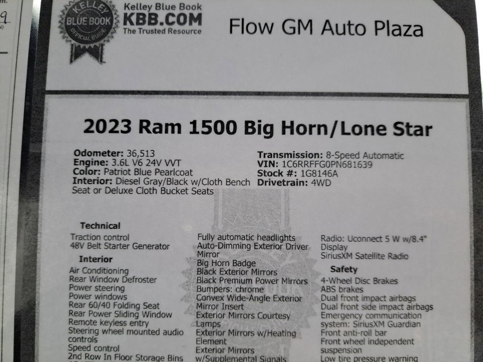 Discover the perfect blend of power, technology, and style in this 2023 Ram 1500 Big Horn/Lone Star. Schedule your VIP test drive today and experience the difference for yourself. Our professional and courteous staff is here to guide you through the easy, transparent, and no-pressure shopping experience you deserve.